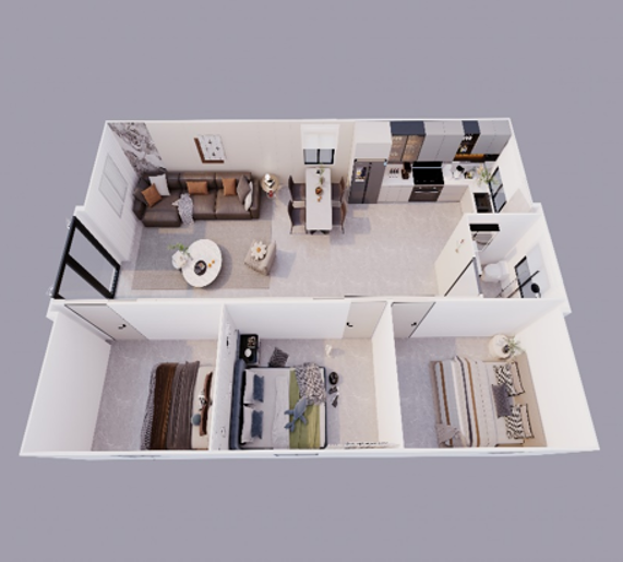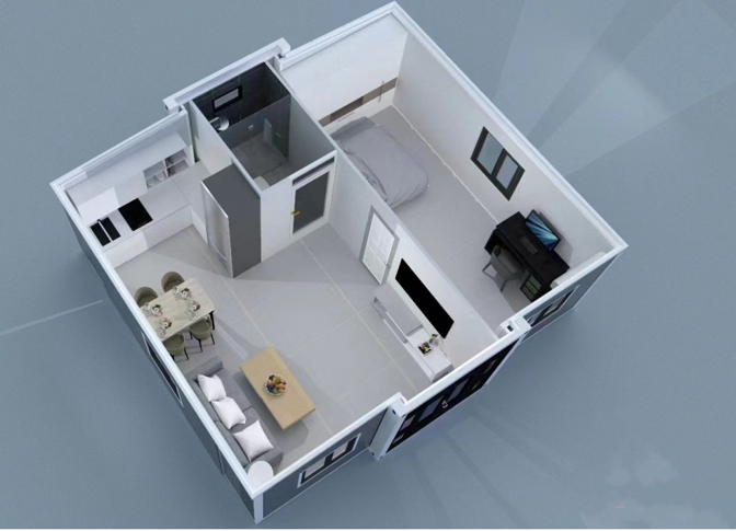 The Dual-Wing Expandable Container is a fully prefabricated housing solution. Its design allows for a significant increase in internal space by unfolding the two side wings—after expansion, the space is nearly three times larger than when folded, meeting diverse needs for residential, office, farm, or commercial use.
