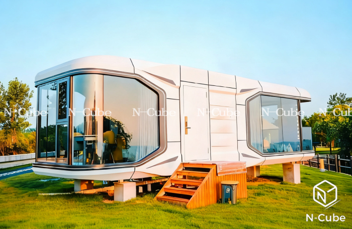 The space capsule is constructed with advanced materials that are lightweight yet durable, featuring a circular or aerodynamic design highly similar to real space capsules. Its exterior walls are made of space-grade aluminum, maintaining color and shape for decades without the need for maintenance or renovation. It also eliminates concerns about environmental issues such as termite infestation, rainwater erosion, and seawater corrosion.